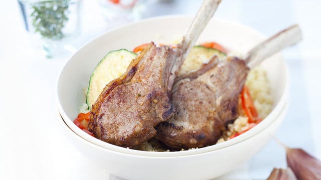 - 2Griller les côtes au barbecue ou à la poêle.Servir avec un mix de légumesCourgettes, poivrons... mélangés à du boulghour.
