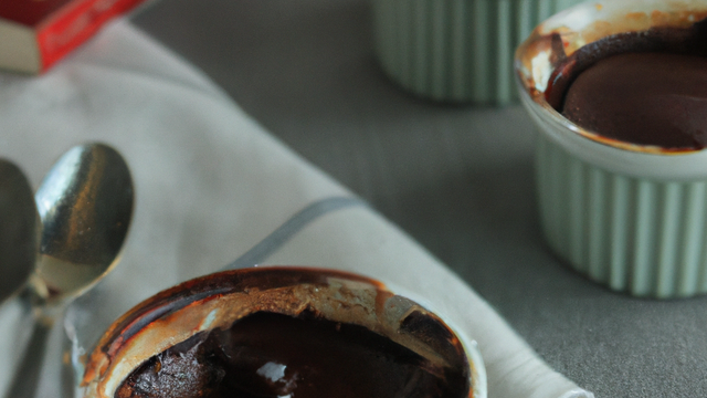 on coupe le coulant à la cuillère et la une rivière de chocolat.