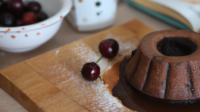 Petit gâteau au chocolat au coeur coulant lorsque l'on en prend un morceau avec la cuillère.