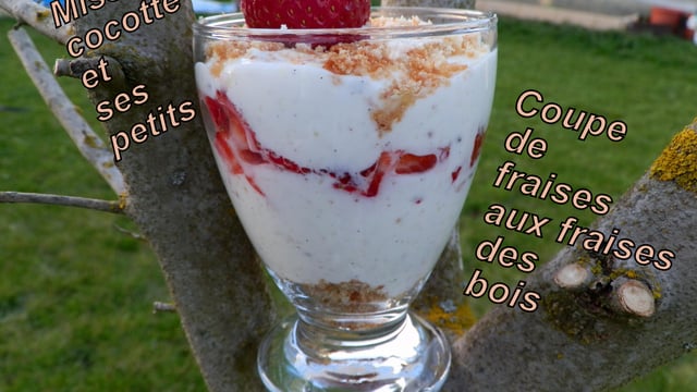 Mettre un peu de fromage blanc sucré des fraises coupées en morceaux et remettre du fromage blanc.