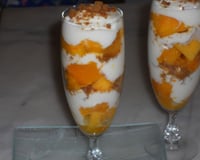Réservez les pêches et le fromage blanc 2 h au frais. Emiettez au dernier moment, les biscuits sur vos coupes aux pêches et fromage blanc.