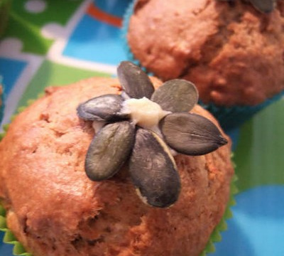 Des petits cakes pommes-courgettes à la cannelle et muscade, chapeautés de graines de courges.