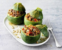 Creuser les courgettes à la cuillère et les remplir de viande.