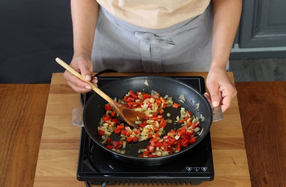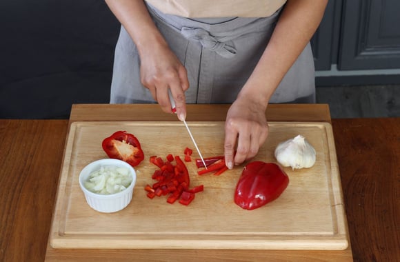 5Coupez la chair des poivrons en petits dés.