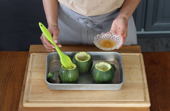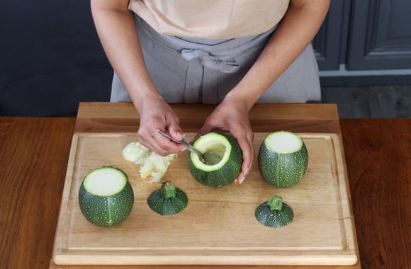 Découpez le chapeau des courgettes. Creusez la chair et retirez les graines à l'aide d'une cuillère.
