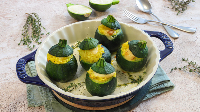 Oubliez les classiques ! Découvrez nos courgettes farcies d’un risotto fondant et parfumé, sublimées par une touche de gourmandise grâce au fromage fondu. Faciles à préparer, elles sont parfaites en entrée ou en plat végétarien.