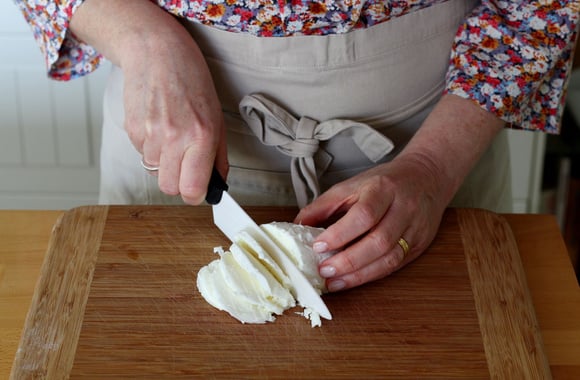 1Coupez les boules de mozzarella en tranches, déposez-les sur une assiette recouverte de papier absorbant et laissez reposer le temps de vous occuper des courgettes. Cela permet au fromage de ne pas rendre d'eau durant la cuisson.