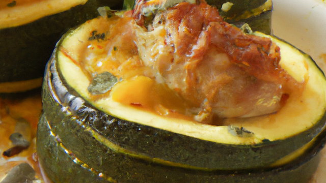 4 - Pour finir, saupoudrer de chapelure les courgettes farcies et mettre par dessus quelques noisettes de beurre. Mettre dans le four chaud pendant 45 mn.