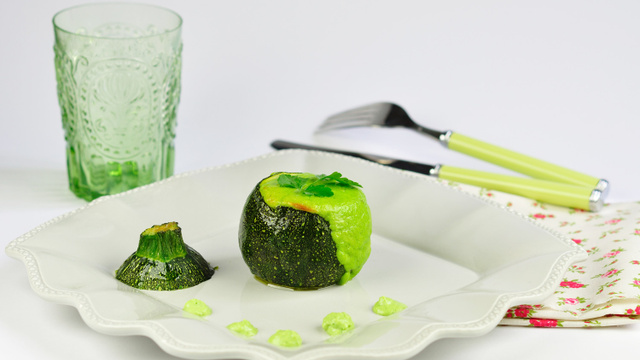 Remplir la cavité creusée des courgettes avec la crème, glisser dans le four et cuire pendant environ 10 minutes.