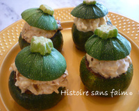 Mettre cette préparation dans les courgettes et déposer dessus les "chapeaux". Remettre au réfrigérateur jusqu'au moment de servir.