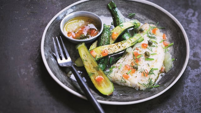 Le conseil d"Erwann Menthéour fondateur du site de coaching FITNEXT «La courgette contient de la vitamine C et est peu calorique, vous pouvez donc la consommer à volonté sans culpabiliser. Un peu d'ail permettra de relever le goût mais pas seulement! L'ail a de multiples propriétés: c'est un anti-cholestérol, antioxydant mais aussi un anti-inflammatoire. Aussi, le merlan est un poisson maigre riche en Oméga 3. »