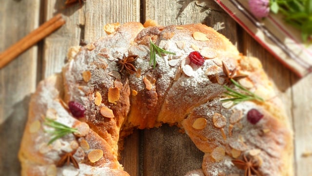 Couronne aux amandes, beurre, mahlèpe.
