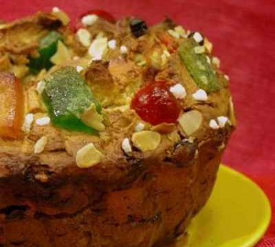 Ajouter les oeufs un par un en continuant de battre puis le lait tiédi, le rhum, le sel, la farine et enfin les fruits confits et secs (en garder pour la décoration).