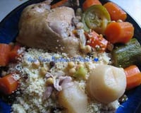 coriandre - cumin - oignon - ail - concentré de tomate - bouquet garni - carottes - navets - tomates - harissa et de l'eau à hauteur. (pas les courgettes et pois chiches)