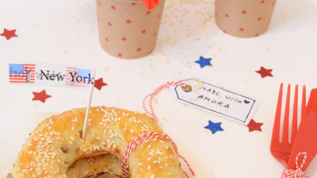 Dorer au jaune d'œuf à l'aide d'un pinceau. Saupoudrer de graines de sésame.
