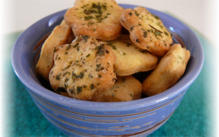 Des petits crakers à base de farine de maïs, salés au moulin et parsemés de persil. Du croquant pour l'apéro!