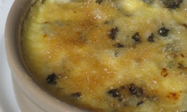 Cette crème brûlée est fondante à souhait et délicieuse. Le goût subtil du Roquefort Papillon est contrebalancé avec le sucre caramélisé.