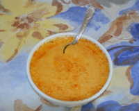 Verser le mélange coco-passion sur les œufs et le sucre. Bien mélanger et répartir dans les deux ramequins.