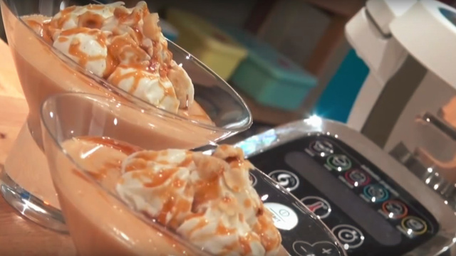 Quand la crème caramel est prête, retirer le mélangeur et remplacer par le batteur. Verser le mélange lait-crème-fécule et refermer le Companion. Faire cuire vitesse 3 à 90°C 15 minutes.