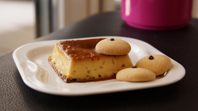 Au moment de servir, passez la lame d'un couteau le long des bords des potes de crème caramel puis renversez-les sur des assiettes. Servez aussitôt avec les biscuits au beurre.