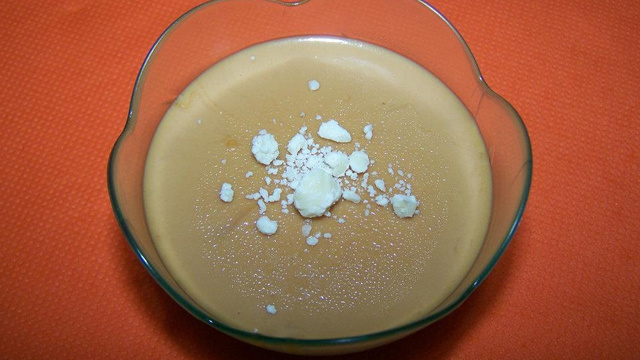 Décorer selon les goûts, sur la photo quelques morceaux de chocolat blanc mixés.