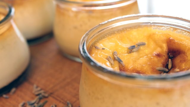 Préchauffez votre four à 180°C Th.6. Portez le lait à ébullition avec la lavande, puis hors du feu, laissez infuser 10 minutes.
