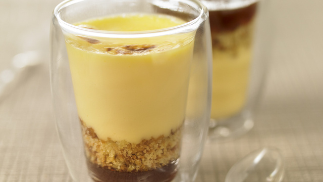 Faites cuire les verrines au bain marie, à 180°C, environ 30 minutes, dans un four pré-chauffé. Laissez refroidir 20 minutes à température ambiante avant de servir.