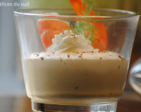 Quand le céleri est cuit, mettez-le dans le bol de votre blender, versez un peu de bouillon et mixez. Vous devez obtenir une soupe un peu épaisse. Rectifiez avec un peu de bouillon si elle est trop épaisse. Ajoutez un filet de crème fleurette, mixez encore. Sevez dans de petits verres avec un peu de pain d'épice et des copeaux de foie gras. - 2