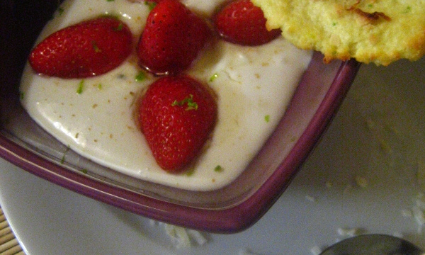 Quelques Ciflorettes sur un lit de crème de coco infusé au mélange Cinq Baies et sirop d'Agave.