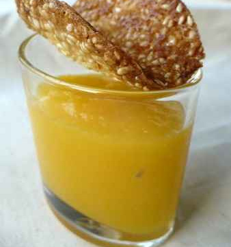 Au moment de servir décorer chaque verrine d'une tuile