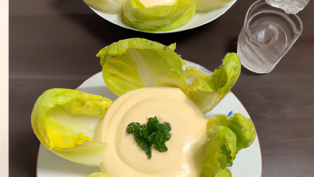 Dressez la crème d'endives dans des verrines assez larges, disposez dessus les oeufs en neige et nappez avec le caramel à la bière.