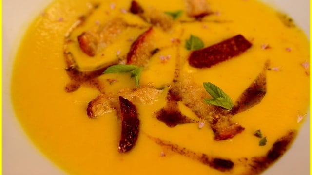 Vous pouvez ajoutez quelques croûtons au moment de déguster la soupe.