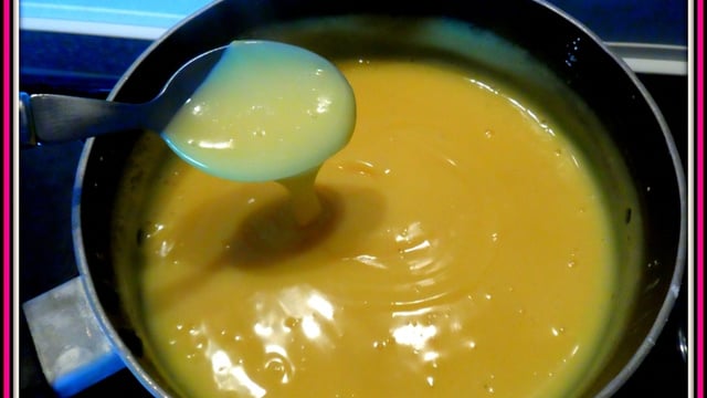 Remettre sur le feu et faire chauffer à feu doux sans cesser de remuer jusqu'à ce que la crème épaississe. Laisser refroidir en recouvrant d'un torchon pour éviter la formation d'une pellicule.
