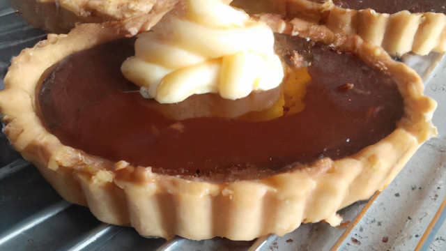 La tartelette peut être accompagnée d'un cordon de crème anglaise aux pistils de crocus.