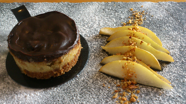 L'association poires-chocolat revisitée qui change de la tarte habituelle, avec sa base aux spéculoos, c'est un régal !