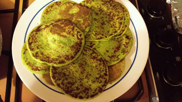 Huiler une poêle et mettre un peu de préparation comme pour faire une crêpe épaisse. - 4Servir.