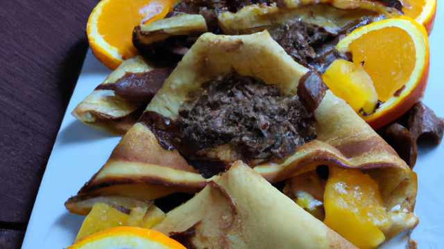 Disposer 1 crêpe par assiette, garnir de crème au chocolat et de tranches d'orange.