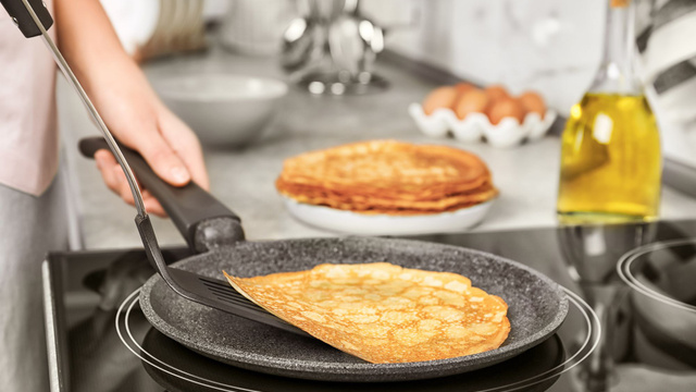 Préchauffer une poêle légèrement graissée (huile avec un pinceau ou une cuillère enrobée de papier essuie-tout) à feu moyen (thermostat 6).