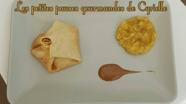 Mettre la préparation au milieu d'une crêpe. Rajouter un peu de pâte à tartiner de spéculoos. Refermer. Faire fondre un peu de pâte à tartiner de speculoos dans la poêle avec le lait pour qu'elle devienne un peu liquide. Sur une assiette présenter la crêpe, le reste de pomme et le coulis de spéculoos. Un dessert pour les petits et pour les grands. Bonne dégustation.