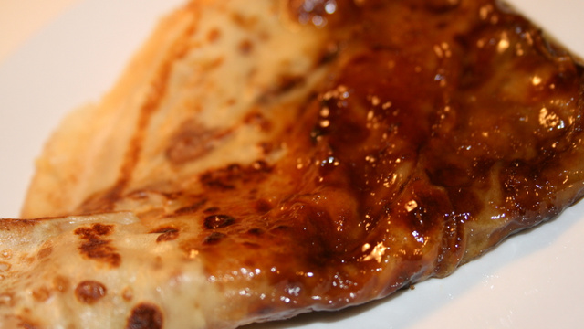 Quand les bords de la crêpe commencent à dorer, retourner la crêpe. Le sucre va fondre et caraméliser.