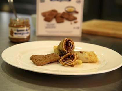 Napper ensuite de pâte à tartiner au speculoos et ajouter enfin une touche croquante avec du speculoos au beurre préalablement émietté.