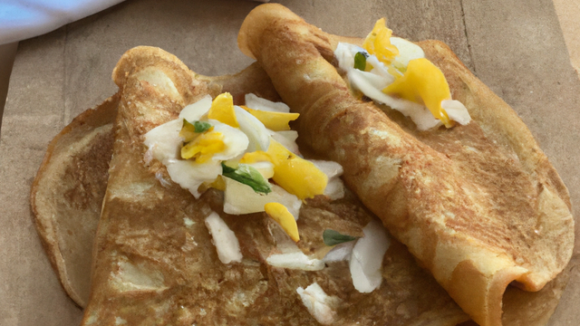 Crèpes parfumées roulées en cone et farcies de chantilly et de fruits rouges.