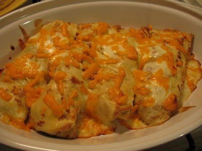 Garnissez les crêpes de la prépaation au poulet, puis roulez-les.