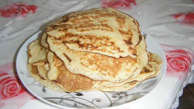 Si possible, laisser reposer, puis étaler une dose de pâte dans une poêle chaude préalablement graissée.