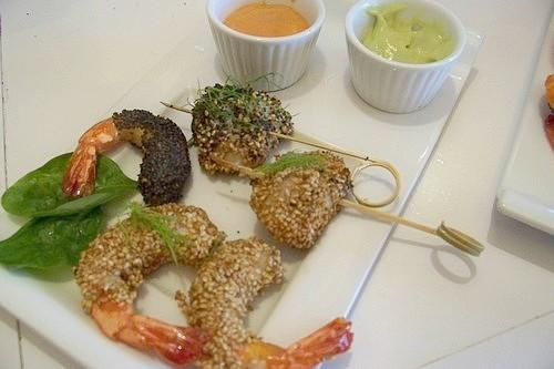 J'ai parsemé de pluches de fenouil et ai servi avec les mayonnaises les st jacques étaient nacrées et moelleuses tout en étant croustillantes les crevettes bien croustillantes elles aussi succès plein surtout avec les graines de pavot bonne dégustation !