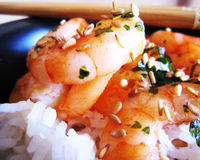 - 2Ajouter les crevettes et laisser mariner 30 minutes.Faire sauter les crevettes quelques minutes à la poêle.Soupoudrer de coriandre fraîche et sésame grillé. Accompagner avec du riz blanc.