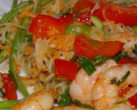 Mettez à chauffer le wok avec l'huile végétale. Jetez-y les crevettes en plusieurs fois, en les retirant quand elles commencent à rosir. Réservez au chaud.