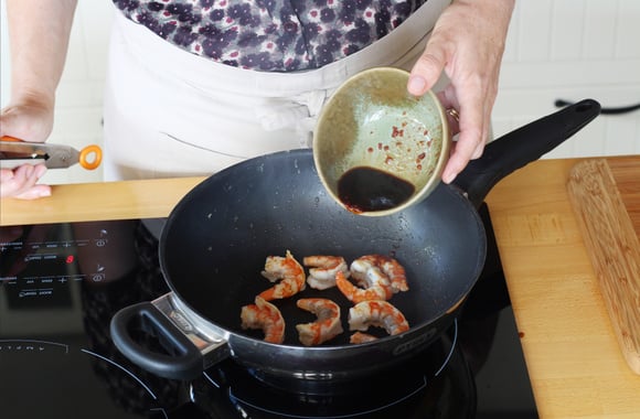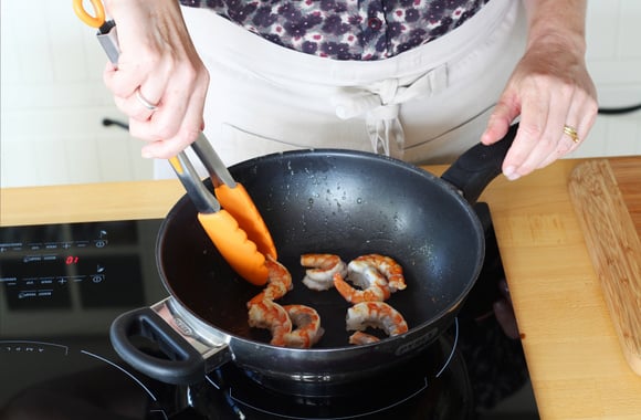 10Retournez les crevettes et prolongez la cuisson de 30 secondes.
