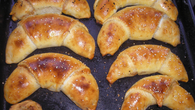 De bons et tendres croissants farcis à la viande hachée et aux oignons une sorte de Mc bun's mais à l'orientale...