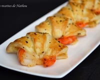 Roulez chaque gambas dans un triangle de pâte feuilletée en commençant à la base, la partie la plus large.